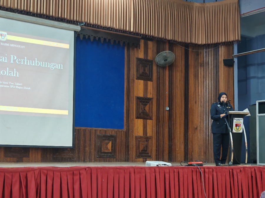 Deskripsi aktiviti : Majlis diserikan dengan kehadiran Pegawai Perhubungan Sekolah (PPS) daripada IPD Bagan Datuk dan Pegawai Angkat daripada PPD Bagan Datuk.